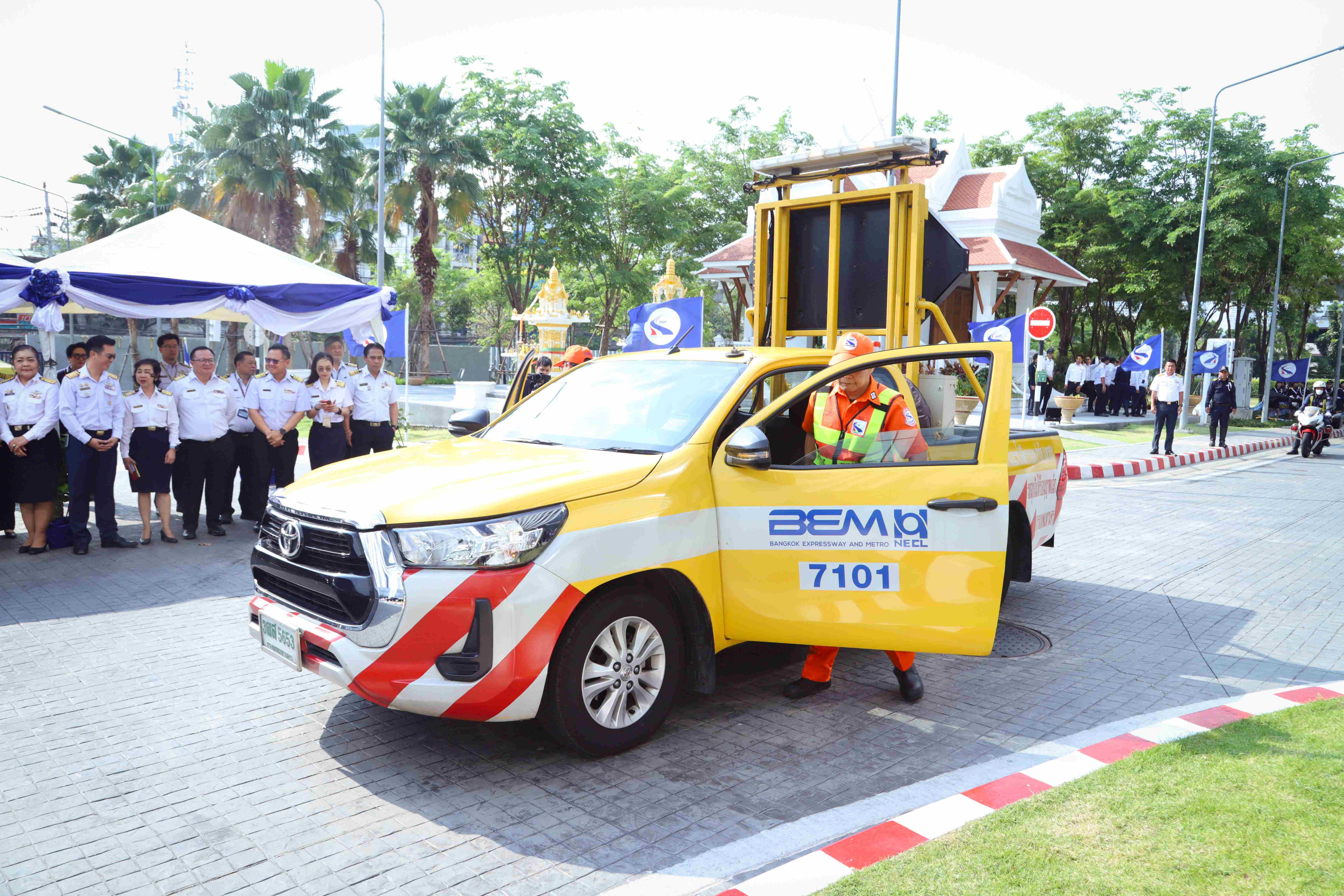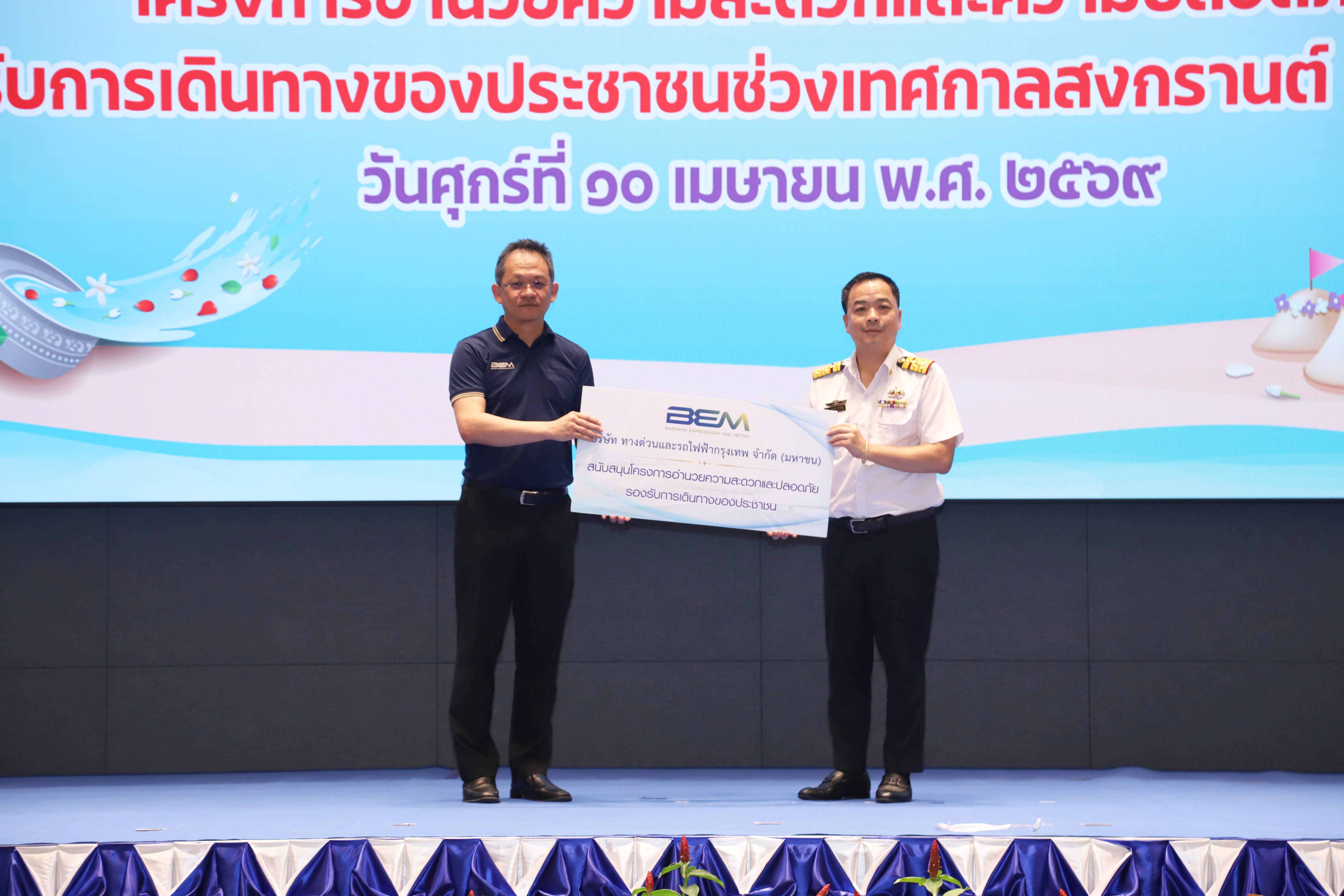 บริษัท ทางด่วนและรถไฟฟ้ากรุงเทพ จำกัด (มหาชน)หรือ BEM ร่วมกับการทางพิเศษแห่งประเทศไทย (กทพ.) จัดโครงการอำนวยความสะดวกและความปลอดภัยรองรับการเดินทางของประชาชนในช่วงเทศกาลสงกรานต์ พร้อมเตรียมรถปฏิบัติงานบนทางพิเศษ ให้ความช่วยเหลือผู้ใช้บริการตลอด 24 ชั่วโมง ตอกย้ำความมุ่งมั่นของ BEM ในการยกระดับความปลอดภัยและสร้างความมั่นใจให้กับประชาชนในทุกเส้นทางการเดินทาง โดยมี นายรุ่งศักดิ์ เหลืองรัตนมาศ ผู้ช่วยกรรมการผู้จัดการ เป็นผู้แทน BEM ร่วมพิธีดังกล่าว พร้อมมอบน้ำดื่ม BEM และผ้าเย็นให้กับ นายสุรเชษฐ์ เหล่าพูลสุข ผู้ว่าการการทางพิเศษแห่งประเทศไทย เพื่อสนับสนุนการปฏิบัติงานของเจ้าหน้าที่และอำนวยความสะดวกให้แก่ผู้ใช้ทาง ณ อาคารศูนย์บริหารทางพิเศษ การทางพิเศษแห่งประเทศไทย (กทพ.)